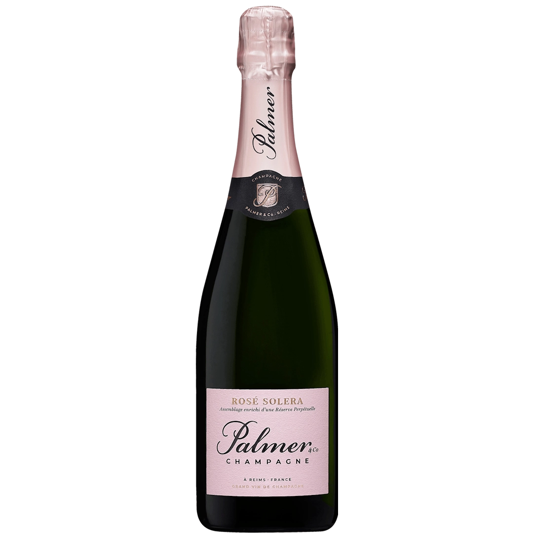 La cuvée Rosé Soléra de Champagne Palmer & Co se compose d'un assemblage raffiné de Chardonnay, Pinot Noir et Meunier, enrichi d’environ 8 % de vin rouge de Pinot Noir issu d’une réserve perpétuelle Soléra, initiée en 1986. Vendangés à la main, les raisins sont vinifiés avec soin : pressurage doux, fermentation en cuve inox et élevage sur lies pendant 2 à 3 ans. Ce procédé unique confère au vin une complexité aromatique remarquable, alliant fruits rouges, épices douces et finesse minérale. Avec un dosage brut de 6 à 7 g/L, ce champagne séduit par son équilibre entre fraîcheur, structure et profondeur.